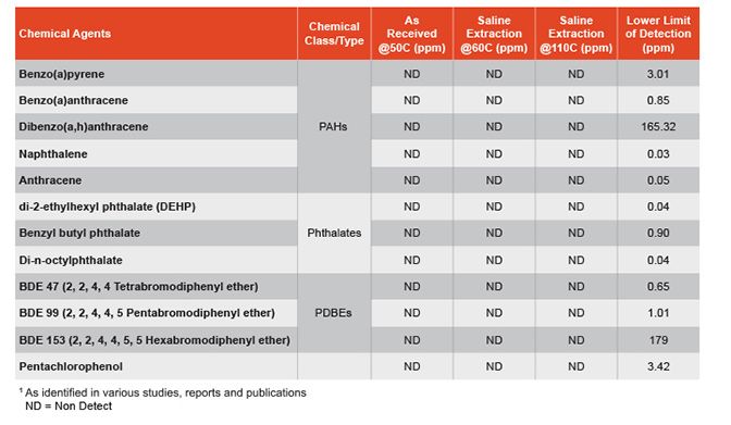 Risultati: I campioni di questi cappucci sono stati analizzati per rilevare gli agenti chimici ai quali i vigili del fuoco sono comunemente esposti1; i risultati sono riportati di seguito.